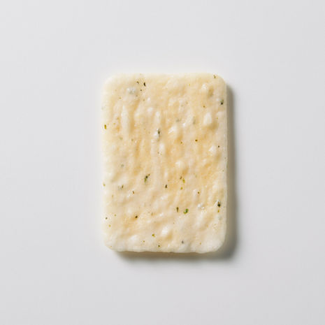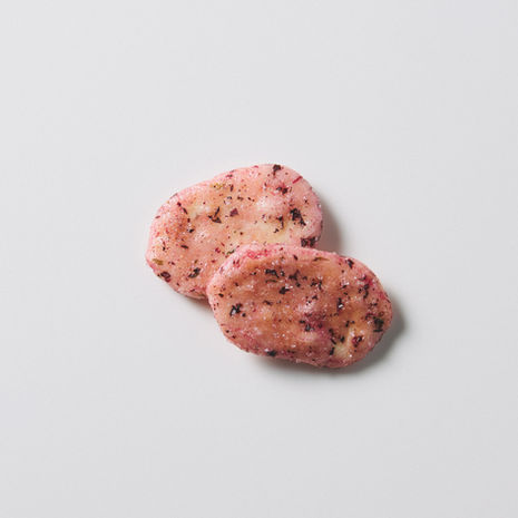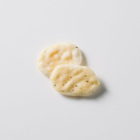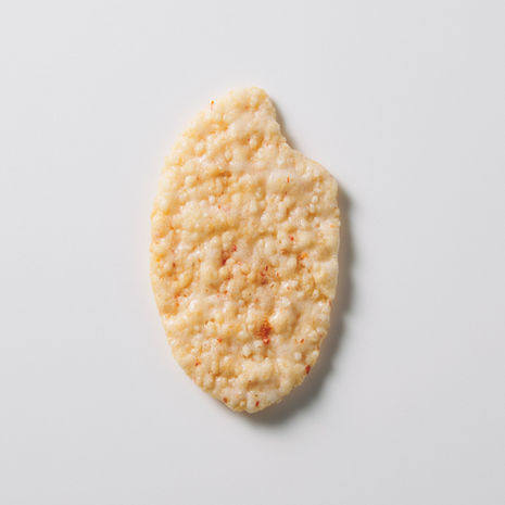 お米を模ったおせんべい。ザクザク食感のおせんべい。ごま油の香ばしい香りとえびのハーモニー